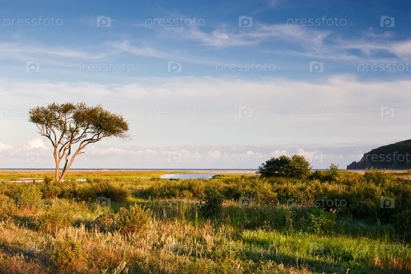 Одинокое дерево на травянистой поляне