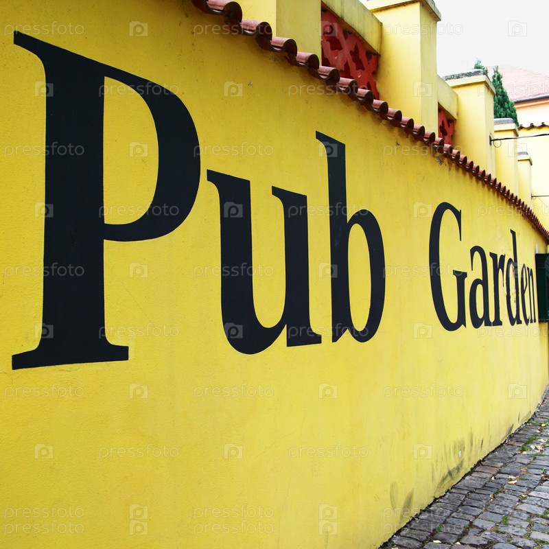 Желтая стена с надписью "Паб" крупным планом