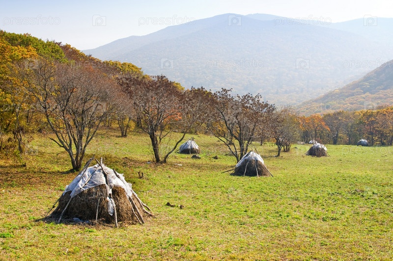 Стожки сена в осеннем поле