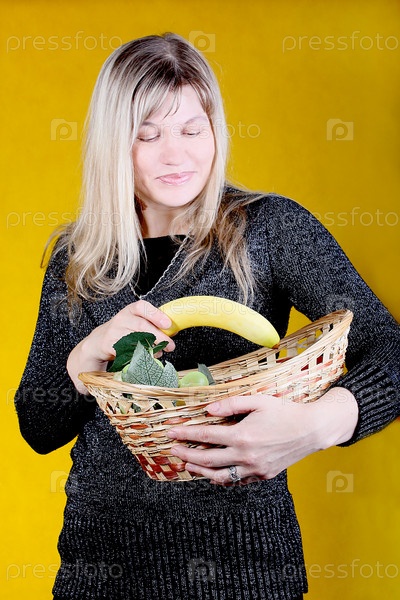 Красивая девушка с корзиной фруктов
