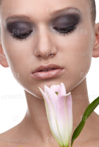 Портрет красивой девушки, которая позирует с цветком