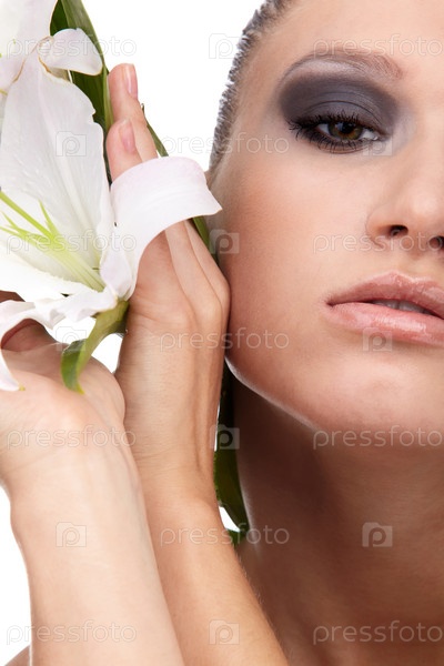 Портрет красивой девушки, которая позирует с цветком