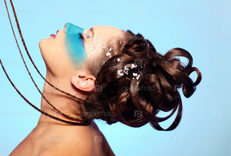 Портрет молодой девушки с голубой полосой на лице