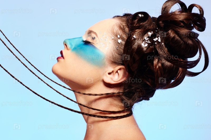 Портрет молодой девушки с голубой полосой на лице. Боди-арт "Русалка"