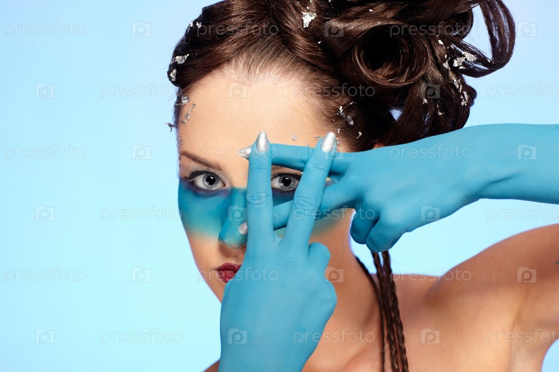 Портрет молодой девушки с голубой полосой на лице. Боди-арт "Русалка"