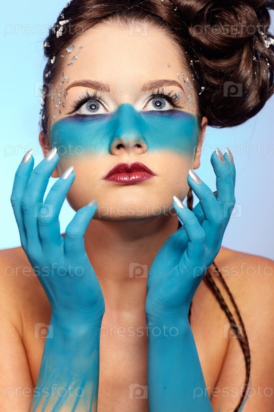 Портрет молодой девушки с голубой полосой на лице. Боди-арт "Русалка"