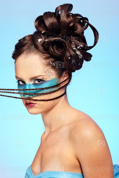 Портрет молодой девушки с голубой полосой на лице. Боди-арт "Русалка"