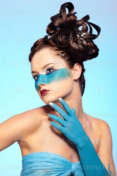 Портрет молодой девушки с голубой полосой на лице. Боди-арт "Русалка"