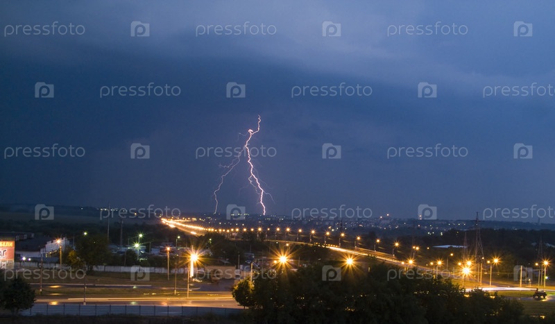 Молния над ночным городом