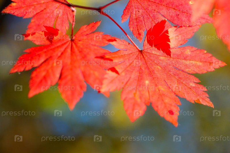 Кленовые листья на ветвях в осеннем лесу