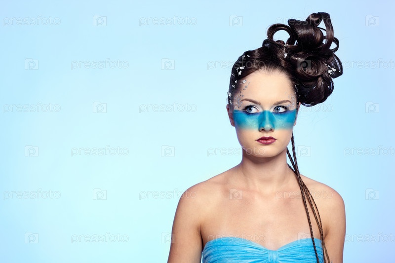 Портрет молодой девушки с голубой полосой на лице. Боди-арт "Русалка"