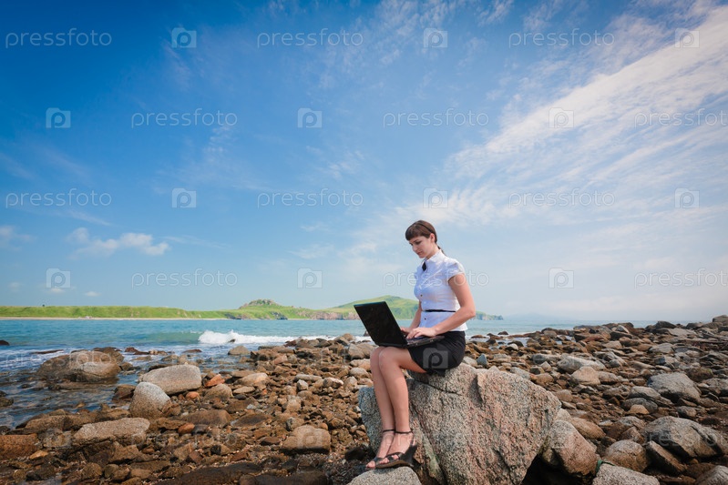 Девушка с ноутбуком на природе