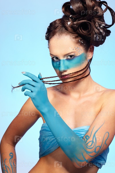 Портрет молодой девушки с голубой полосой на лице. Боди-арт "Русалка"