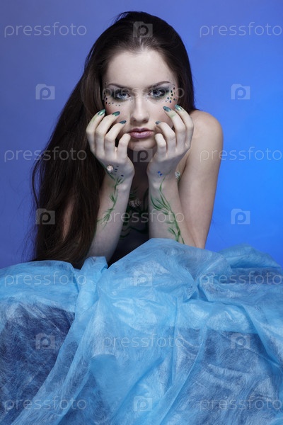 Портрет молодой девушки с фантазийным макияжем. Боди-арт "Русалка"