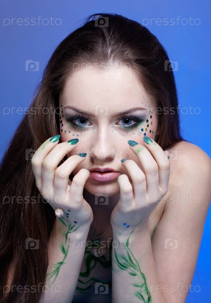 Портрет молодой девушки с фантазийным макияжем. Боди-арт "Русалка"