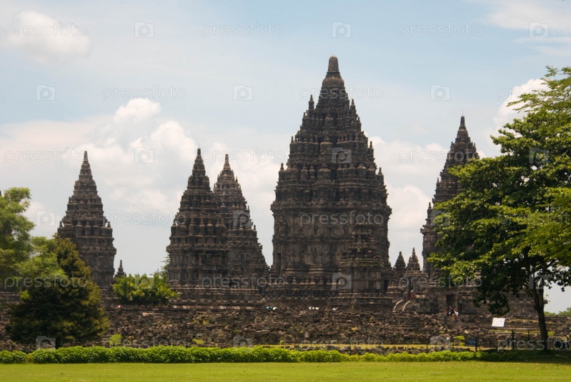 Комплекс индуистских и буддийских храмов Прамбанан на фоне деревьев