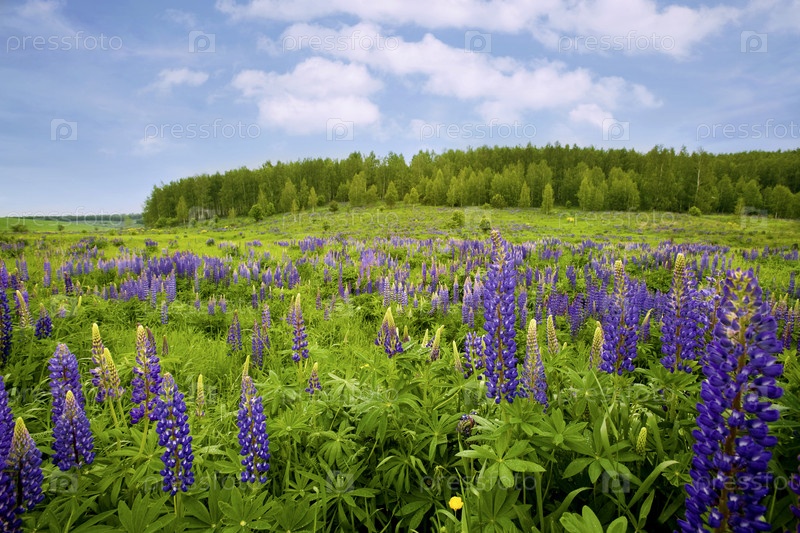 Цветящая луга и лес, расположенные на фоне