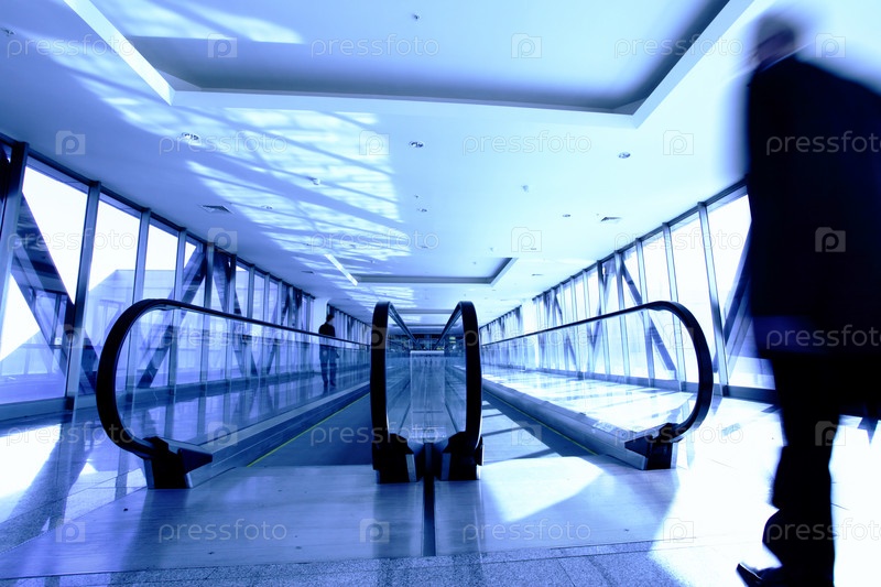 Человек подходит к эскалатору в офисном здании