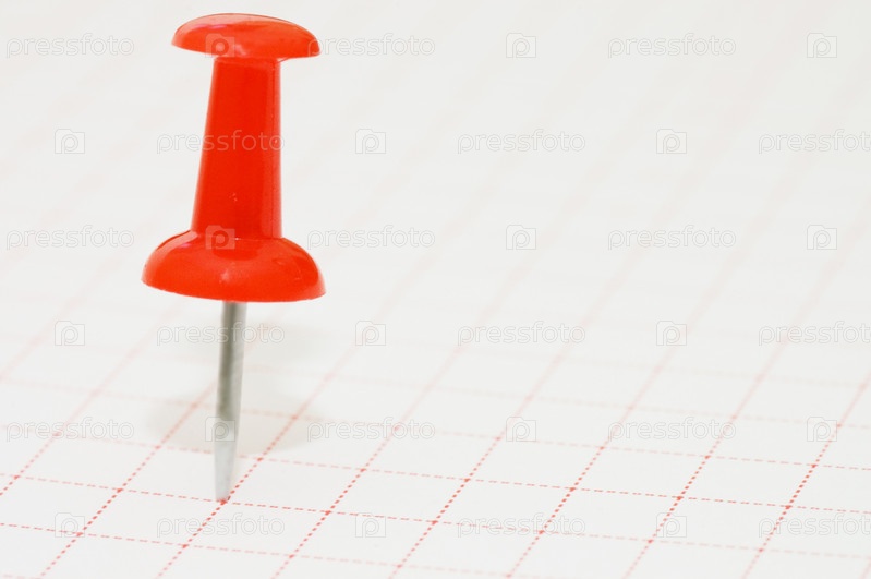 Красная кнопка, воткнутая в чистый лист бумаги