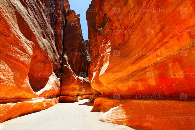 Дорога в ущелье между скалами. Петра, Иордания