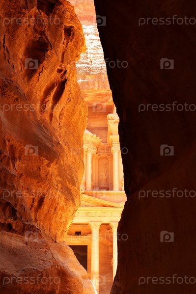 Вид на древний храм в Петре, Иордания