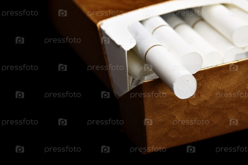 Открытая пачка сигарет на черном фоне