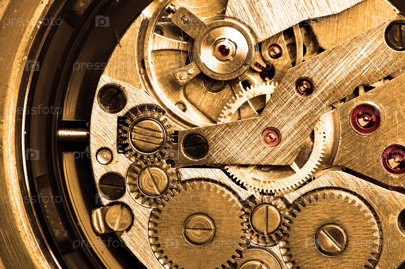 Часовой механизм крупным планом