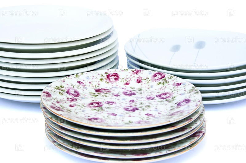 Наборы тарелок на белом фоне