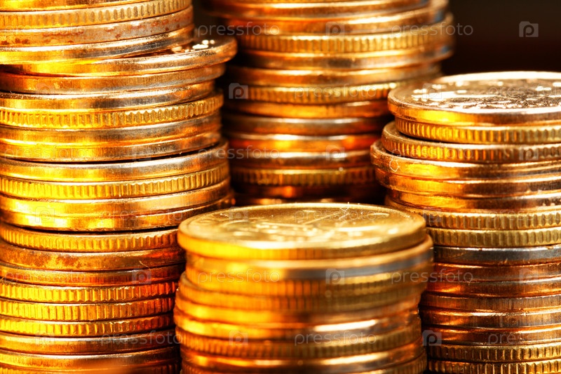 Стопки золотых монет крупным планом