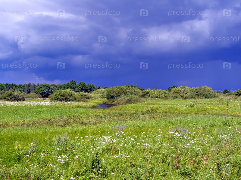 Травянистое поле осенью перед грозой