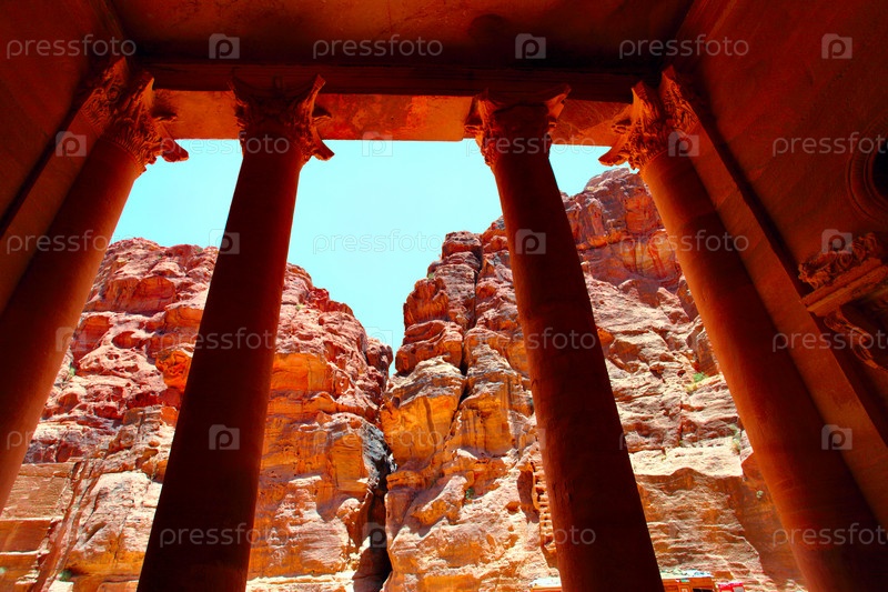 Вид на каньон из сокровищницы Аль-Хазне в древнем городе Петра, Иордания