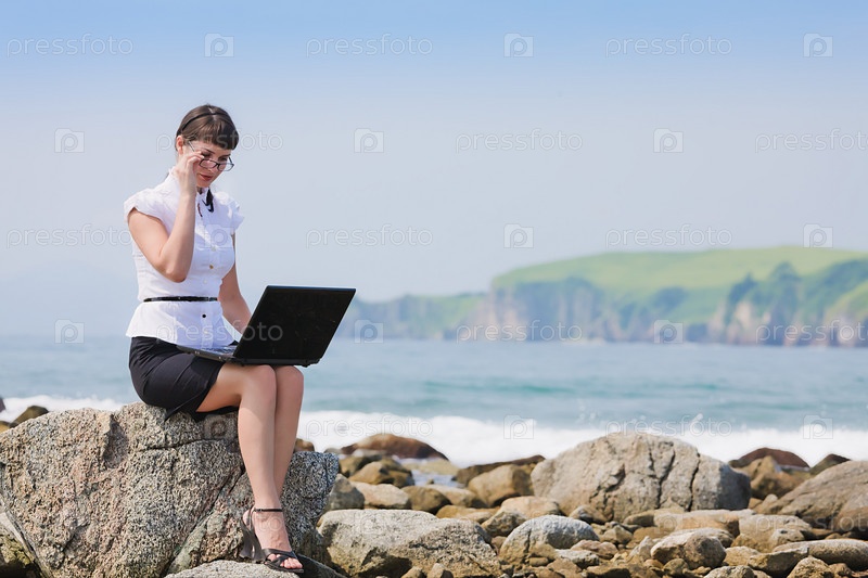 Девушка с ноутбуком на природе