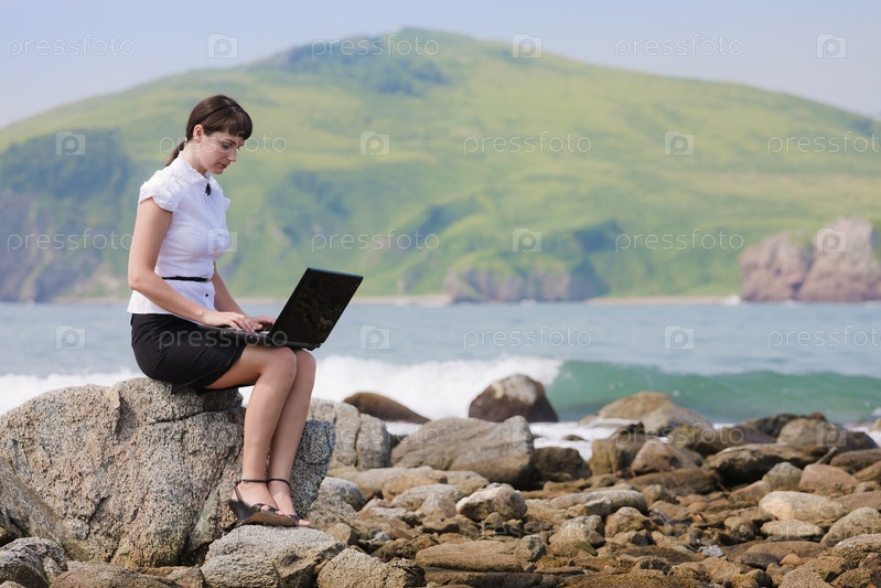 Девушка с ноутбуком на природе