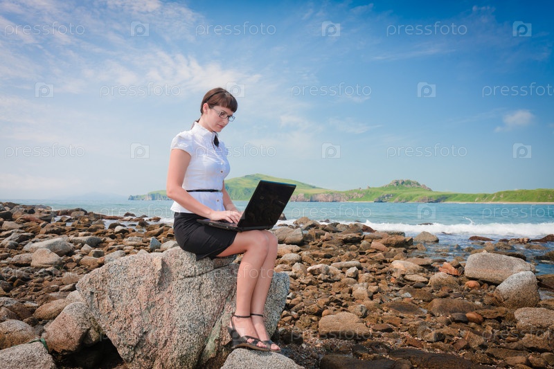 Девушка с ноутбуком на природе