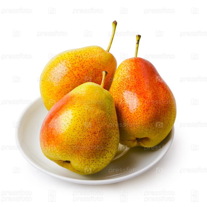 Три груши на белом блюдце