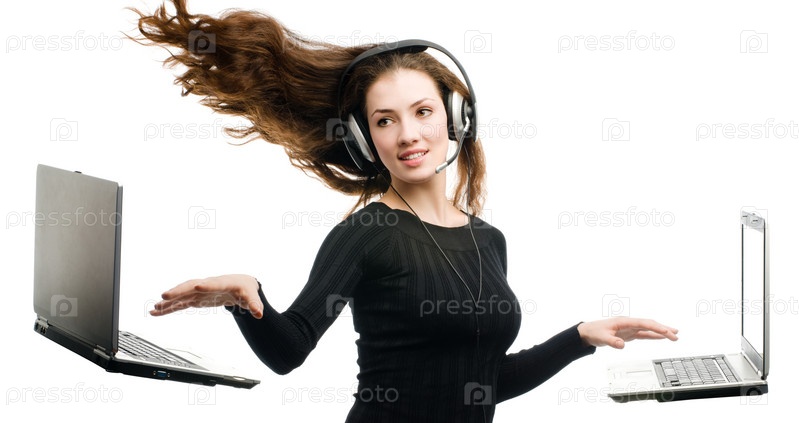 Красивая девушка, работающая в ноутбуке