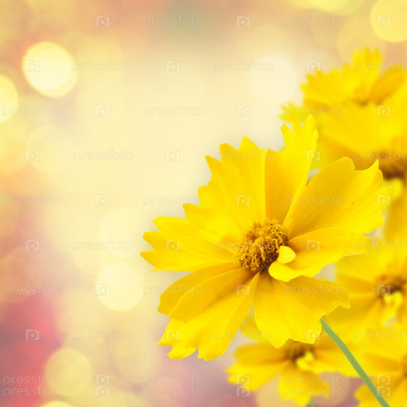 Яркая открытка с желтыми цветами на размытом фоне