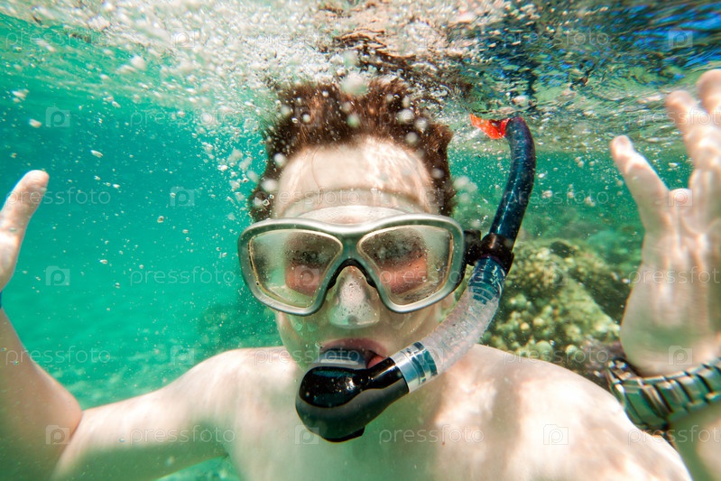 Мальчик в Красном море, подводное плавание