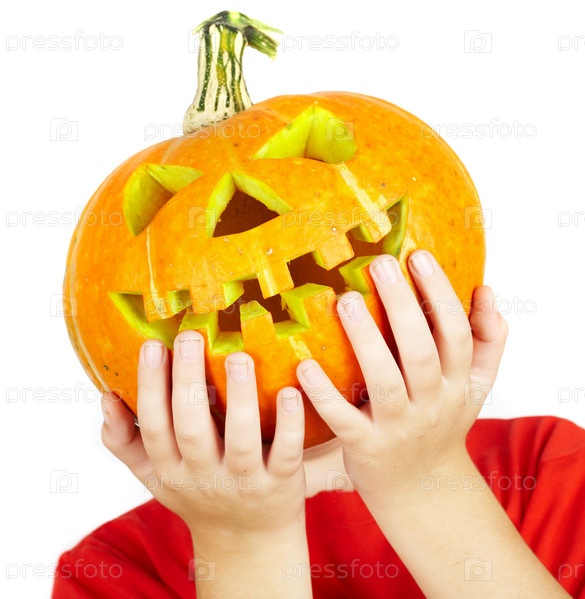 Мальчик держит фонарь Джека