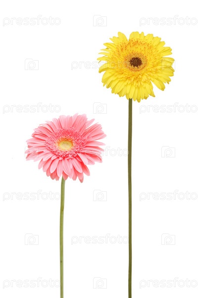 Два цветка герберы Джемсона, изолированные на белом фоне