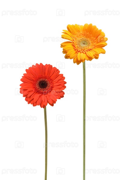 Два цветка герберы Джемсона, изолированные на белом фоне
