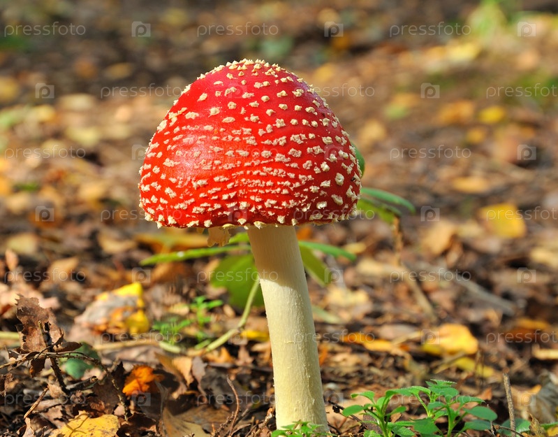 Красный мухомор в осеннем лесу