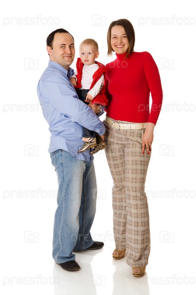 Счастливая семья на белом фоне
