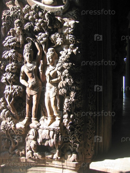Скульптуры в Буддистском деревянном храме Истины в Таиланде