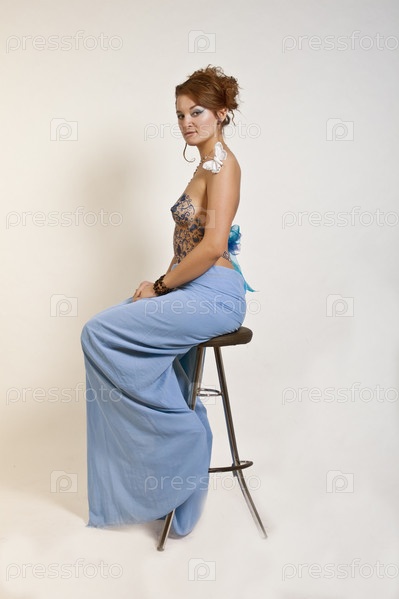 Милая шатенка в голубом парео