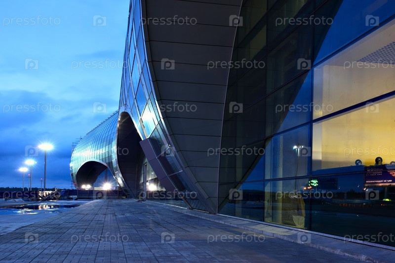 Фасад аэропорта Домодедово на восходе солнца. Москва, Россия