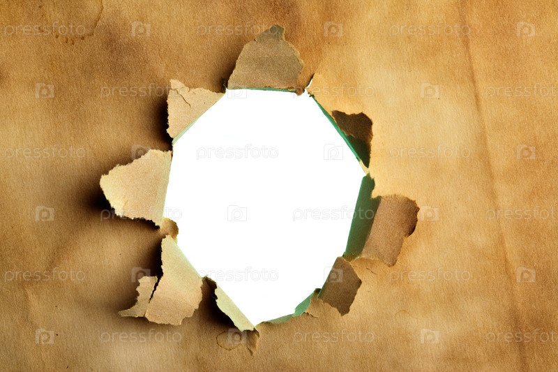 Отверстие с оборванными краями в листе бумаги