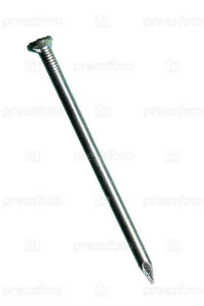 Стальной гвоздь на белом фоне