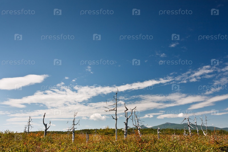 Заброшенное поле под синим облачным небом