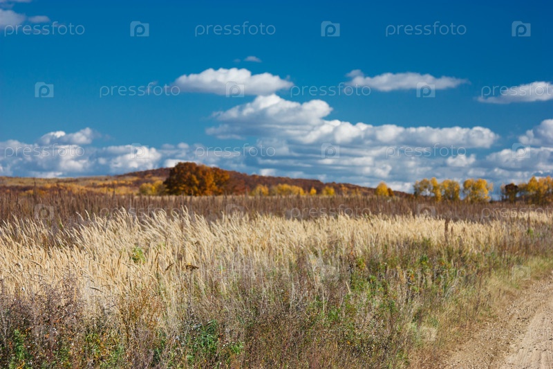 Поляна с сухой травой у подножия холма